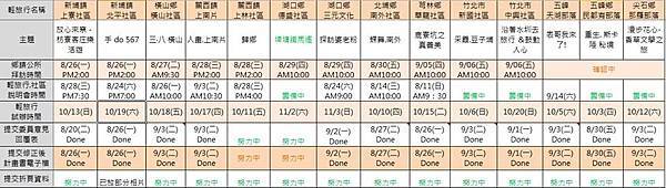 社區金巷獎輕旅行提案各社區以及社造中心的業務,緊密的Schedule,也請大家期待各社區辛苦成果的收成喔~!