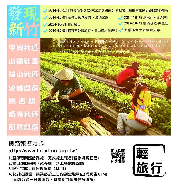 103年度新竹縣社區輕旅行路線開跑囉 ! ! ! 目前已進入最後報名囉!!!請大家密切注意【新竹縣社區營造中心】臉書粉絲團及【發現新竹】網站 !